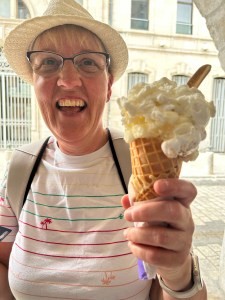 Sharon found an amazing, and extremely popular, marchand de glace and bought herself a massive lemon meringue and coconut ice cream!